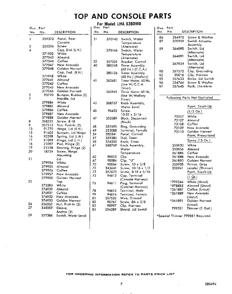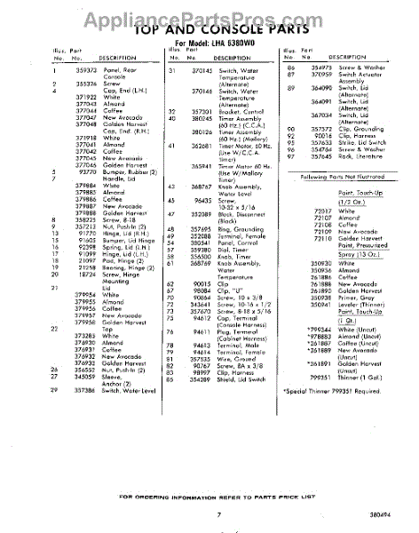Parts for Whirlpool LHA6380W0: 07 - Section Parts