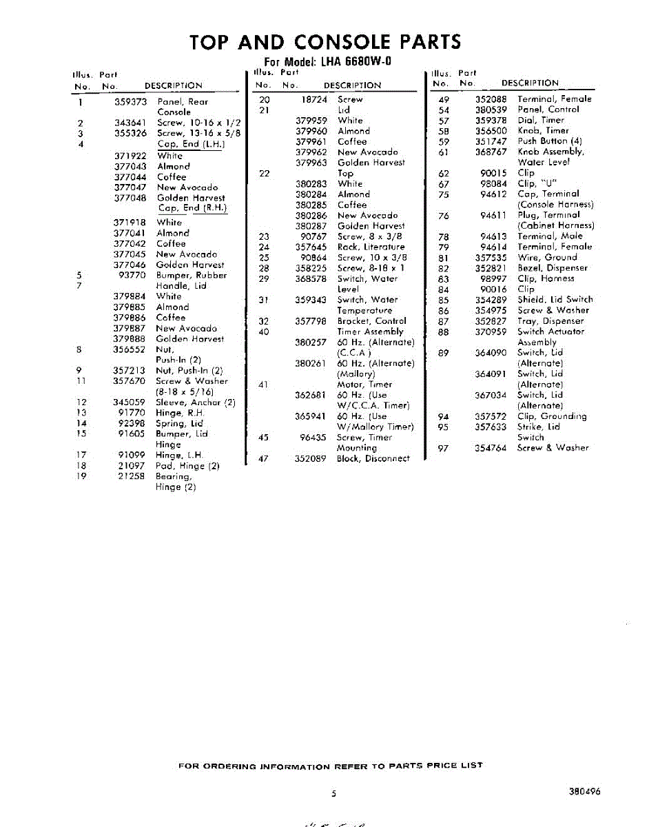 Parts for Whirlpool LHA6680W0: 05 - Section Parts