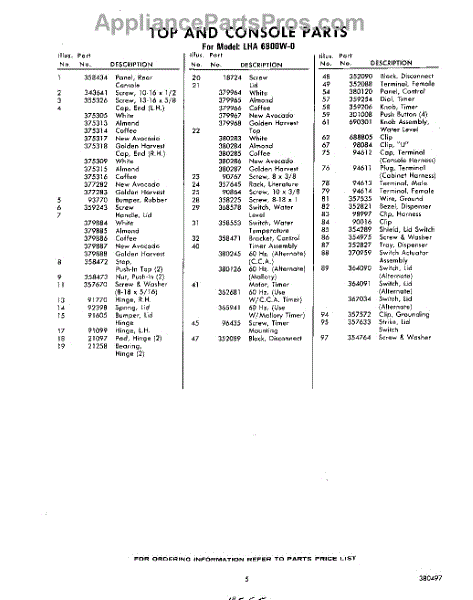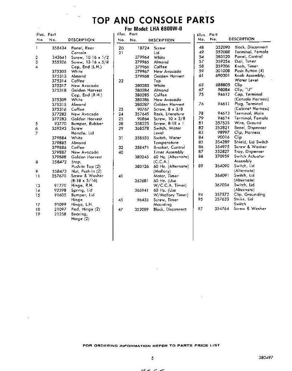 Parts for Whirlpool LHA6800W0: 05 - Section Parts