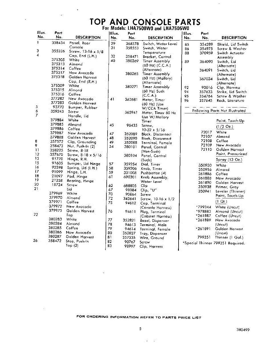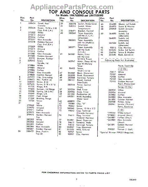 Parts for Whirlpool LHA7500W0: 05 - Section Parts