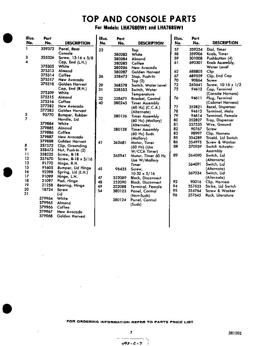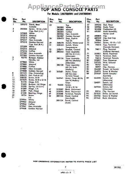 Parts for Whirlpool LHA7680W1: 07 - Section Parts