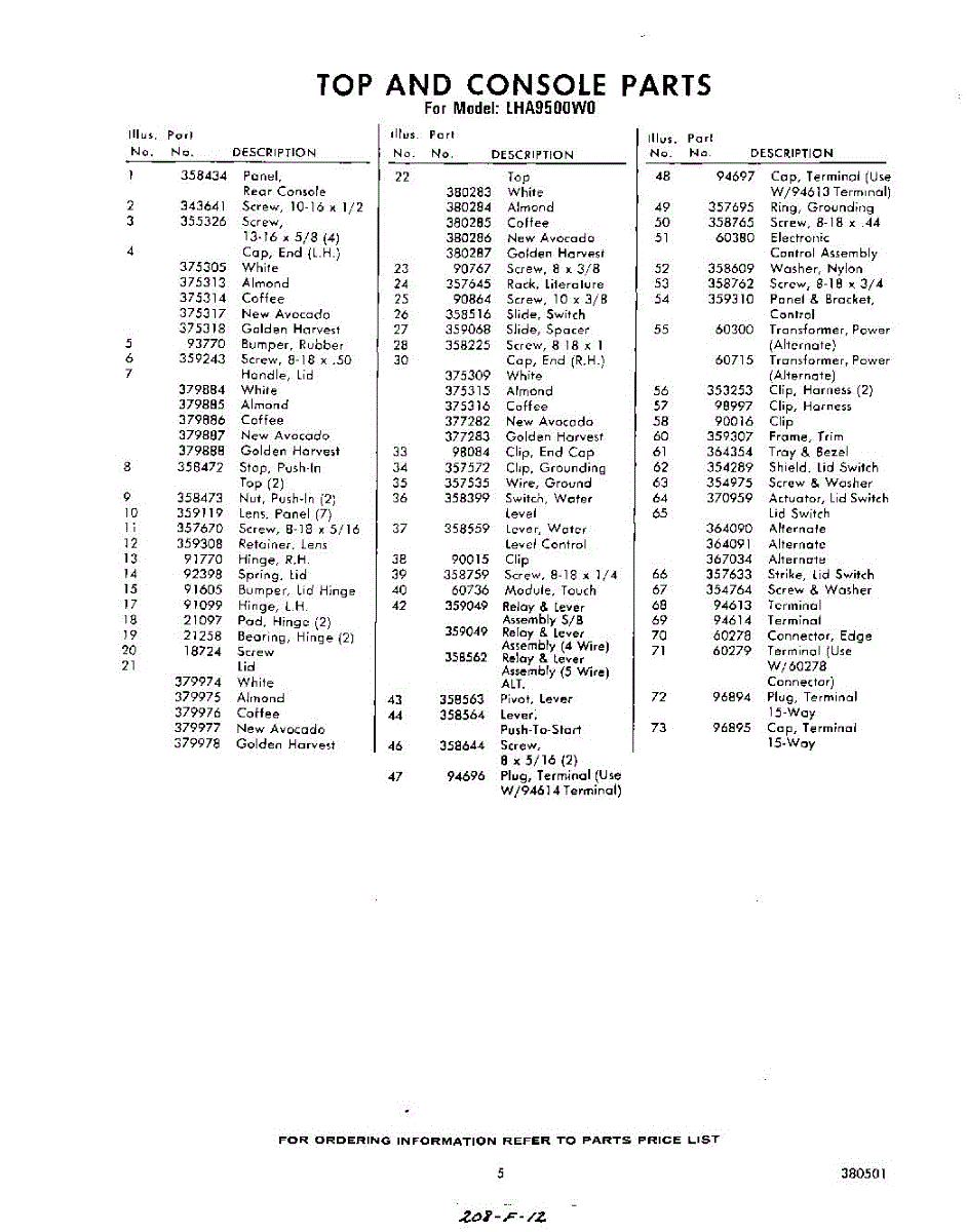 Parts for Whirlpool LHA9500W0: 05 - Section Parts