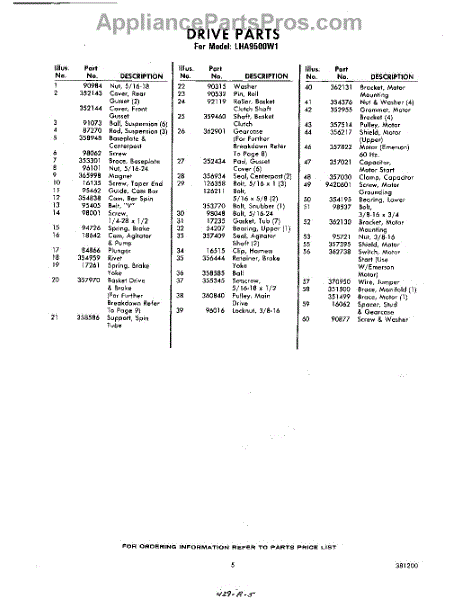 Parts for Whirlpool LHA9500W1: 05 - Section Parts