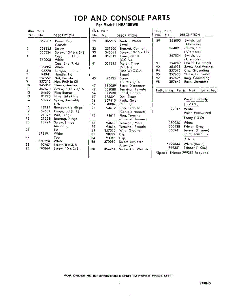 Parts for Whirlpool LHB3000W0: 05 - Section Parts