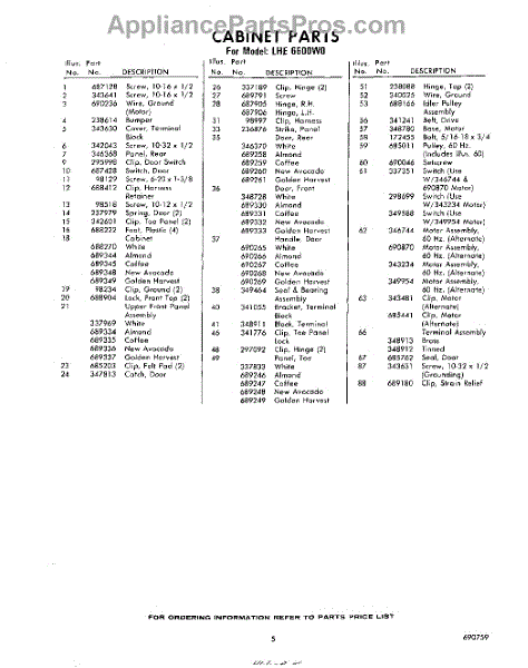 Parts for Whirlpool LHE6600W0: 05 - Section Parts