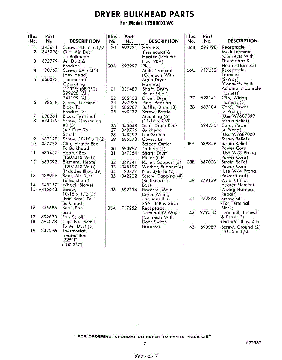 Parts for LT5000XLW0