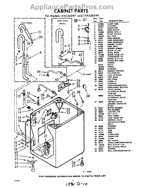 Parts for Whirlpool LVA5565W1: 02 - Section Parts