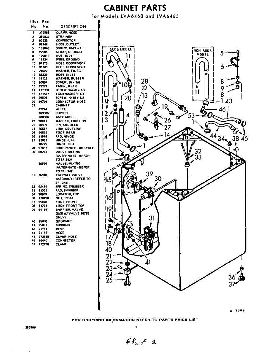 Parts for Whirlpool LVA6460W0: 02 - Section Parts