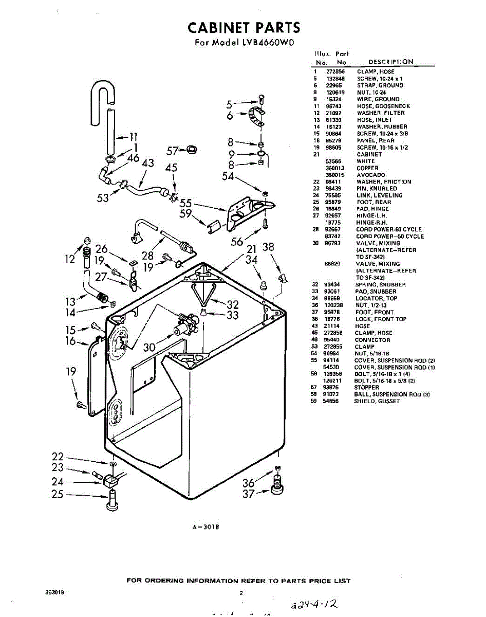 Parts for Whirlpool LVB4660W0: 02 - Section Parts