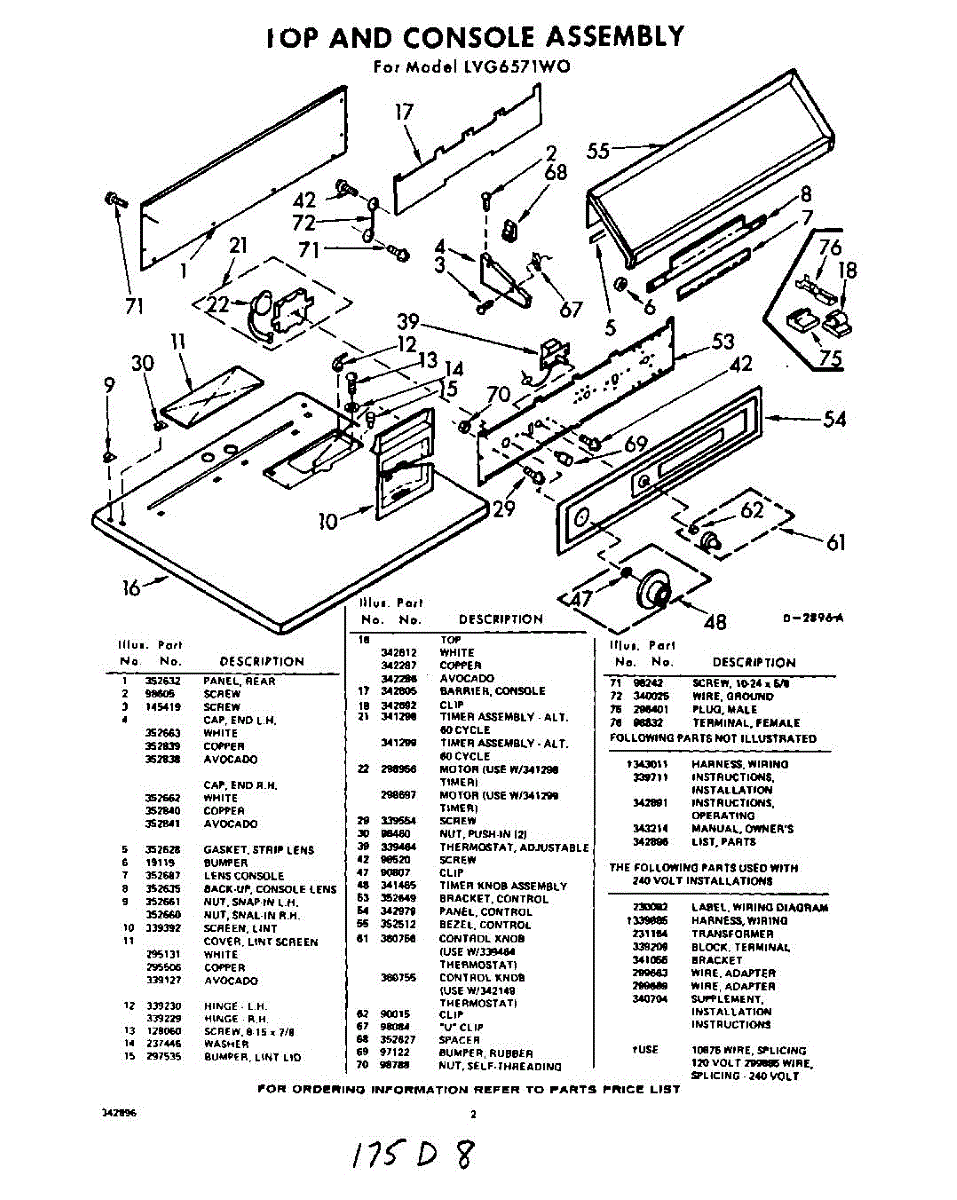 Parts for Whirlpool LVG6571W0: 02 - Section Parts