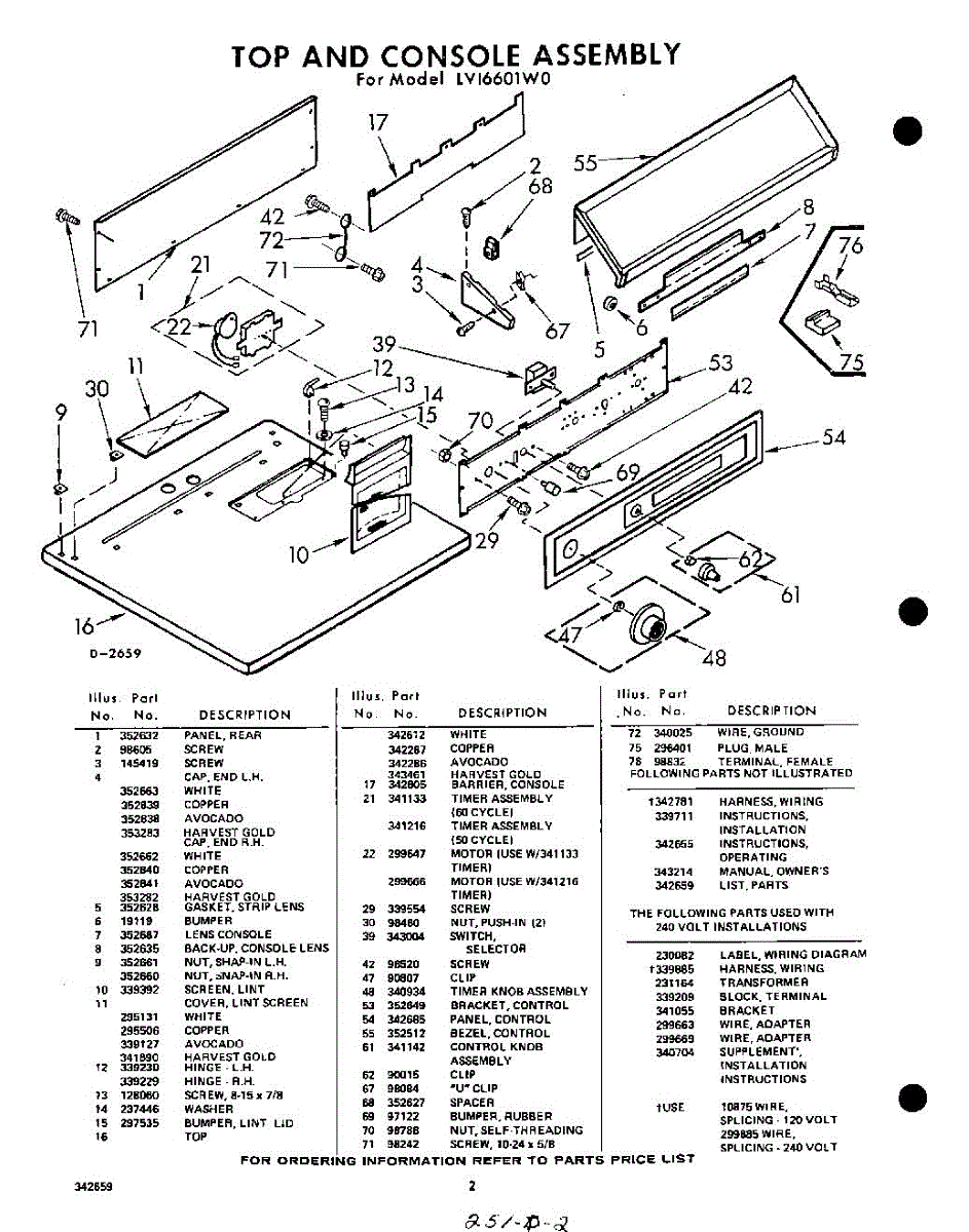 Parts for Whirlpool LVI6601W0: 02 - Section Parts