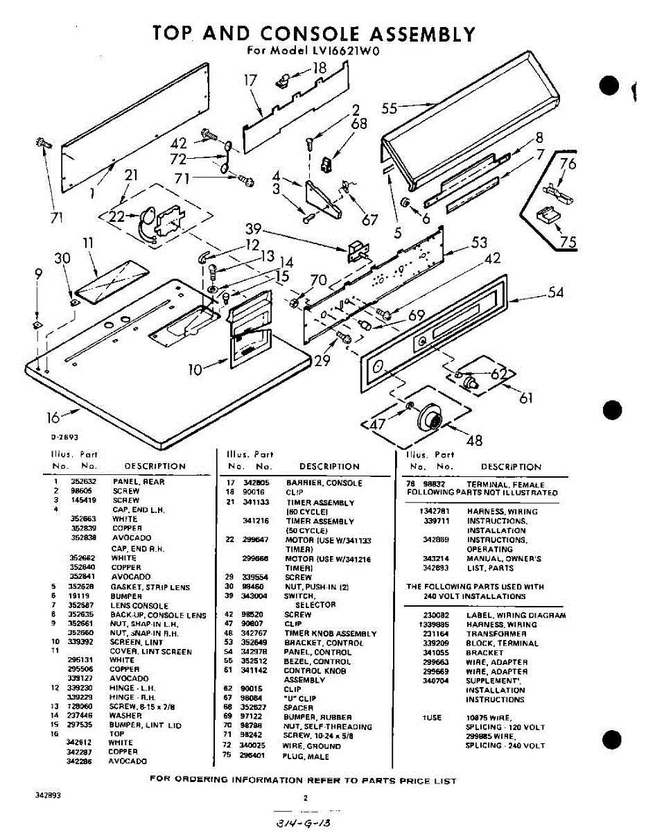 Parts for Whirlpool LVI6621W0: 02 - Section Parts