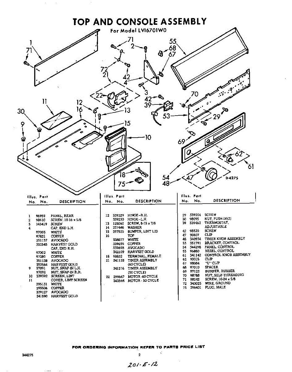 Parts for Whirlpool LVI6701W0: 02 - Section Parts