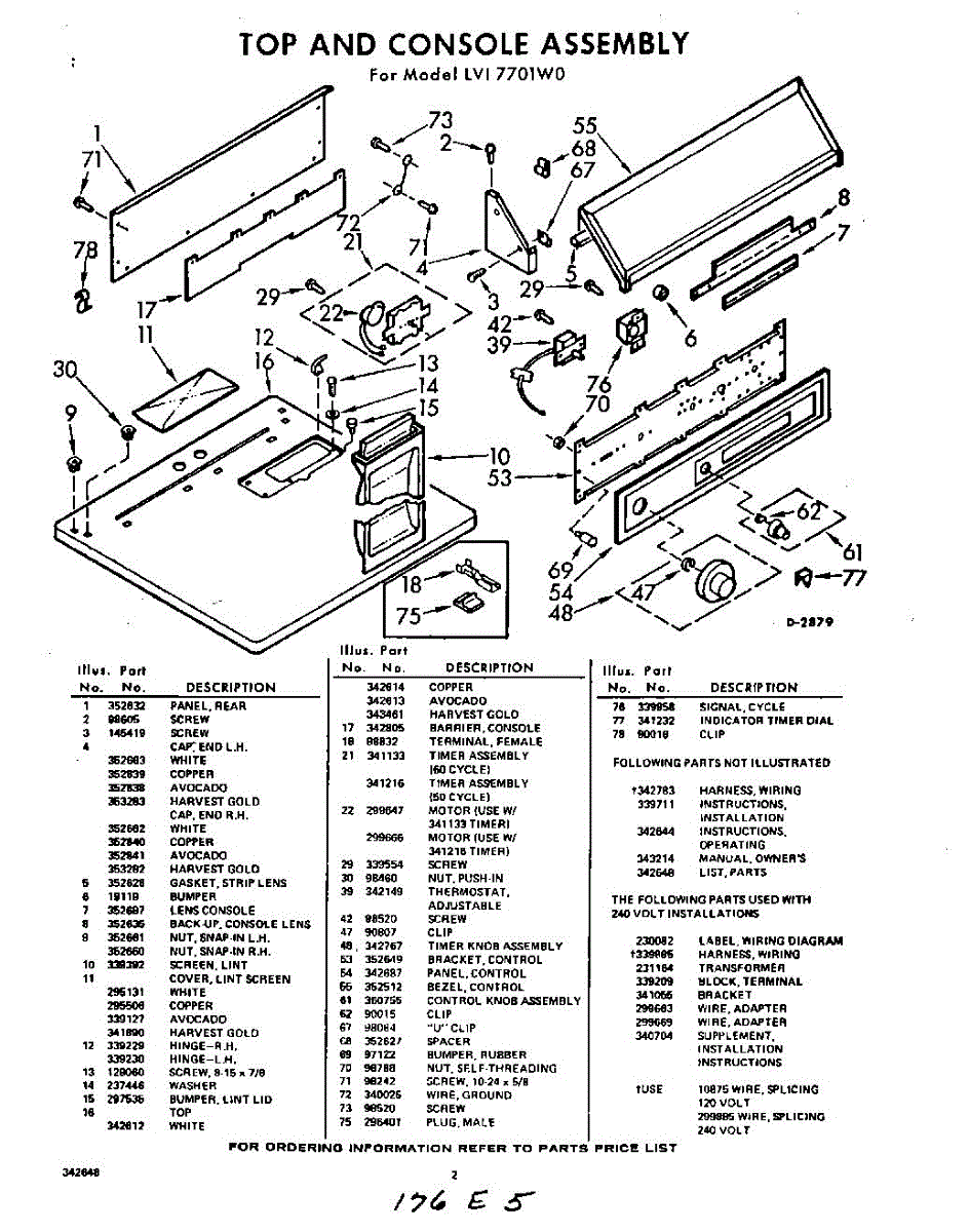 Parts for Whirlpool LVI7701W0: 02 - Section Parts