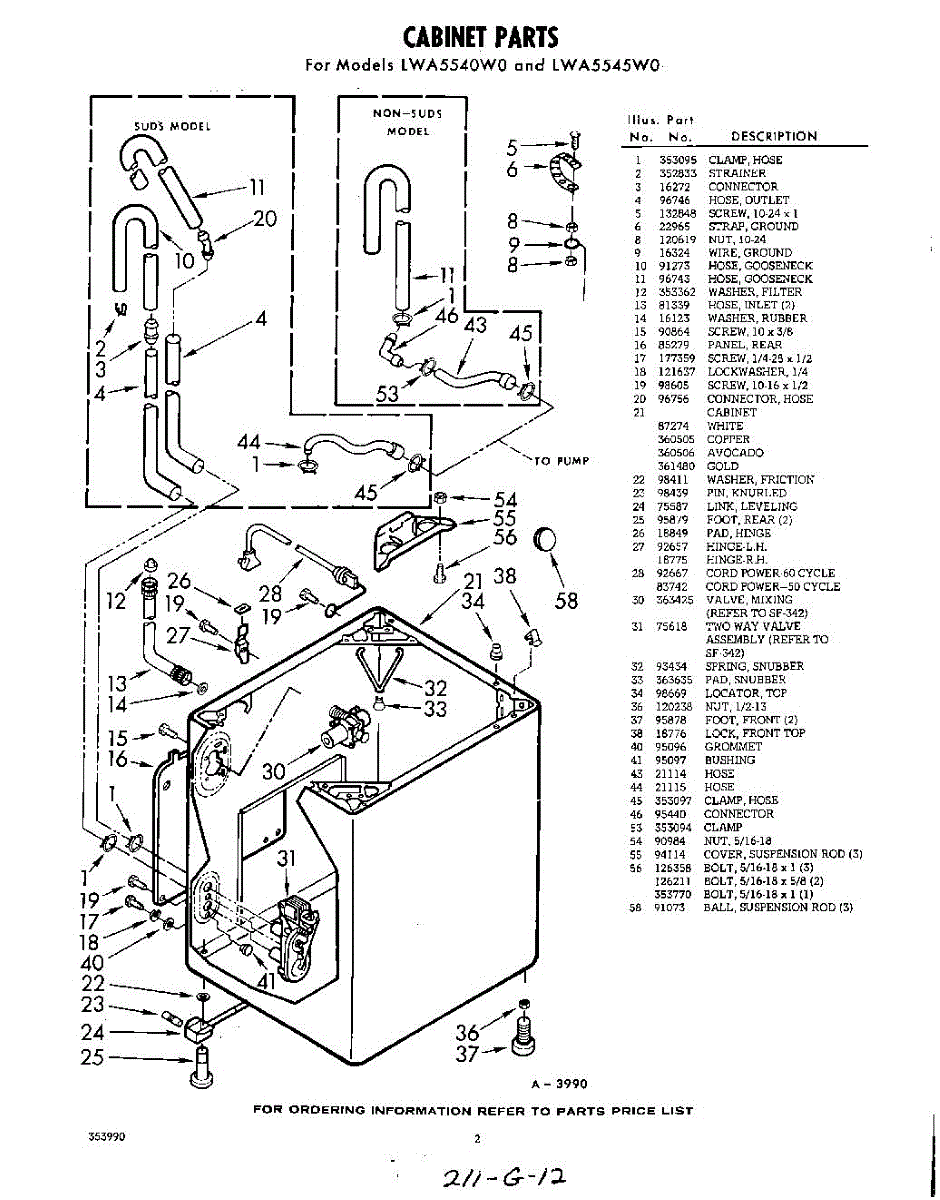 Parts for Whirlpool LWA5545W0: 02 - Section Parts