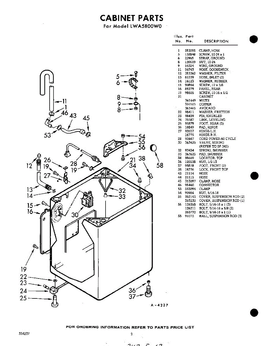 Parts for Whirlpool LWA5800W0: 02 - Section Parts