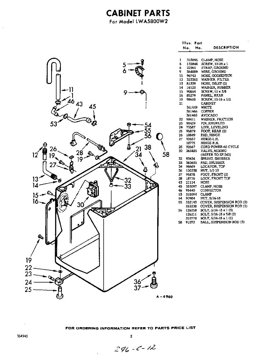 Parts for Whirlpool LWA5800W2: 02 - Section Parts