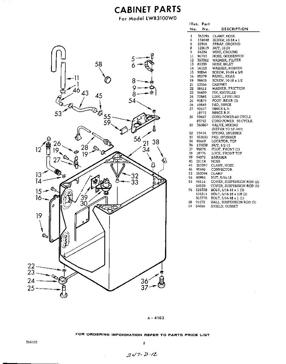 Parts for Whirlpool LWB3100W0: 02 - Section Parts