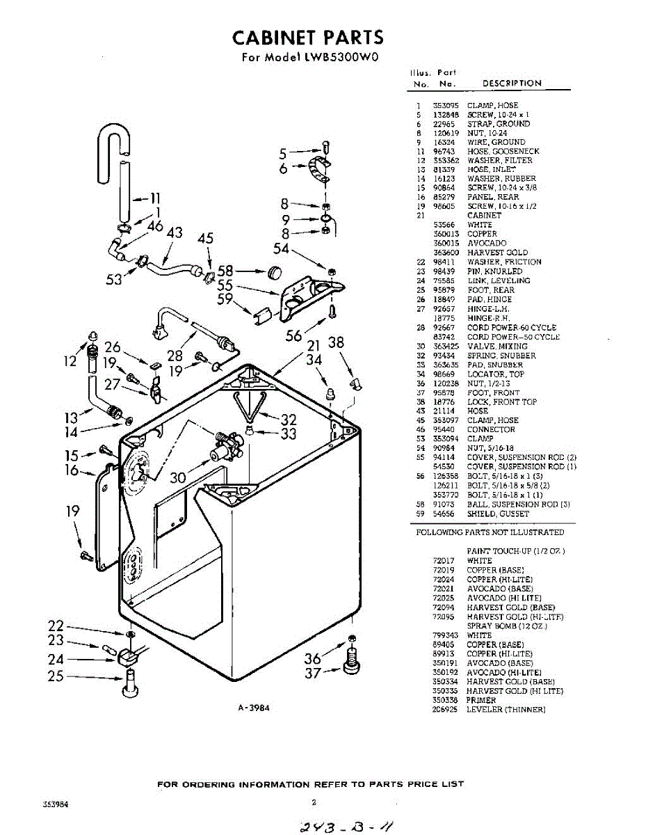 Parts for Whirlpool LWB5300W0: 02 - Section Parts