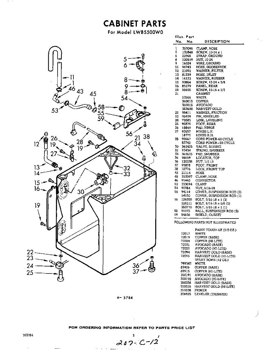 Parts for Whirlpool LWB5500W0: 02 - Section Parts