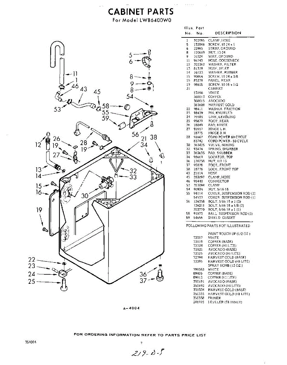 Parts for Whirlpool LWB6400W0: 02 - Section Parts