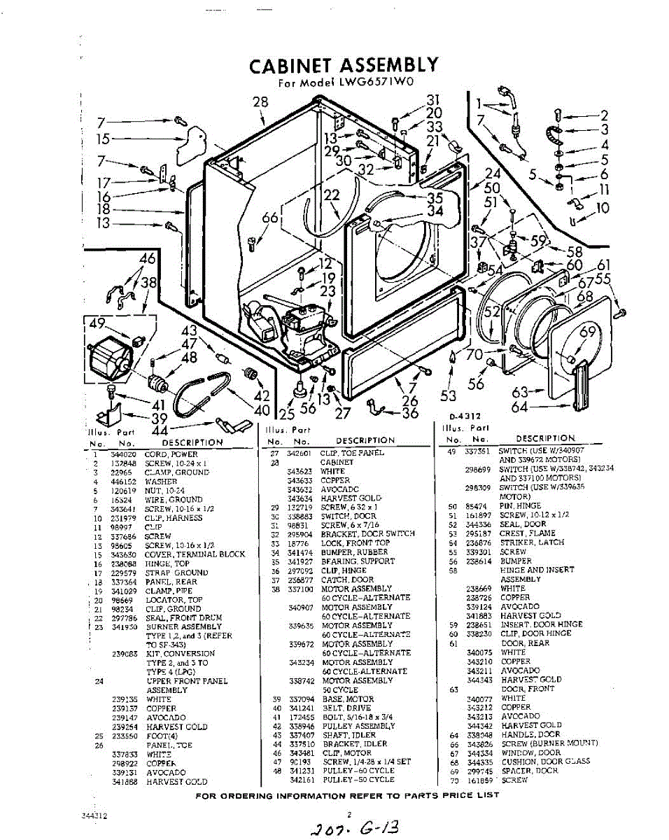Parts for Whirlpool LWG6571W0: 02 - Section Parts
