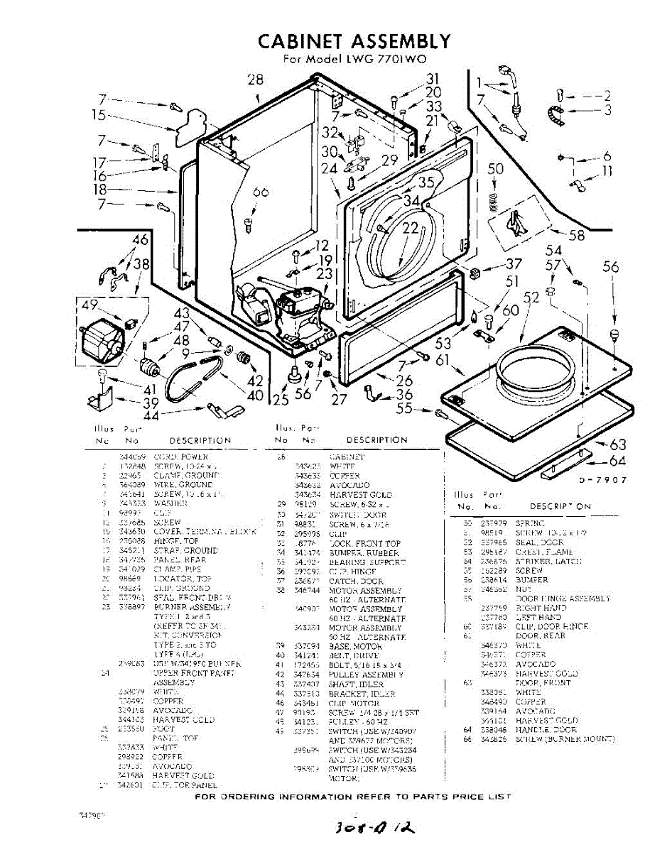 Parts for Whirlpool LWG7701W0: 02 - Section Parts