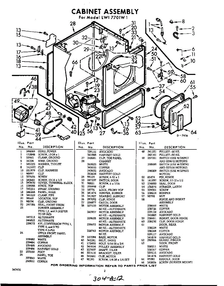 Parts for Whirlpool LWI7701W1: 02 - Section Parts