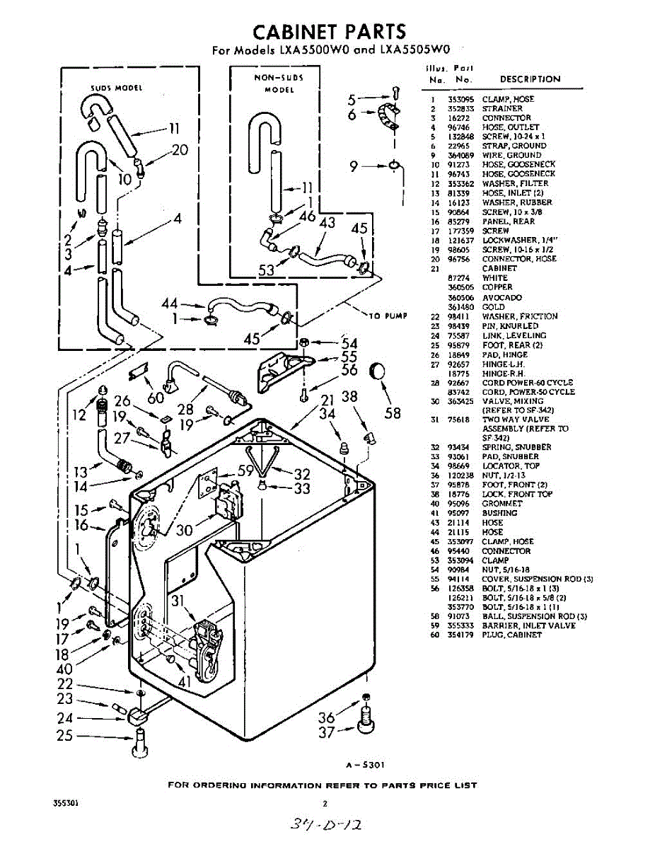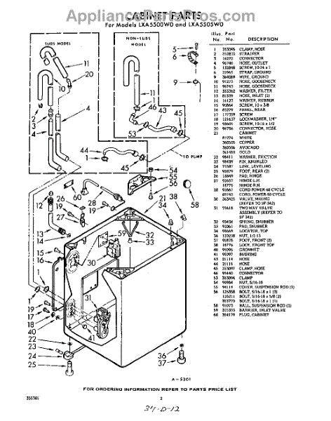 Parts for Whirlpool LXA5500W0: 02 - Section Parts