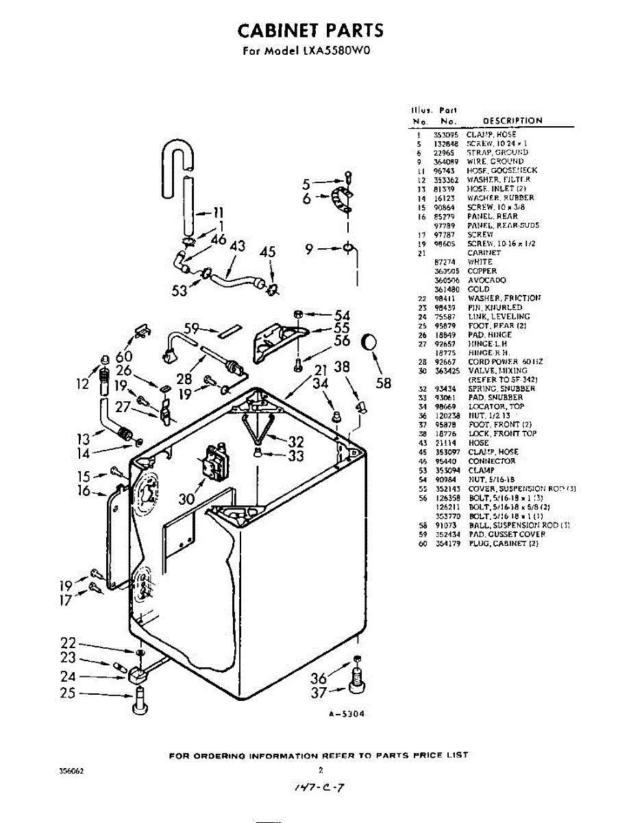 Parts for Whirlpool LXA5580W0: 02 - Section Parts