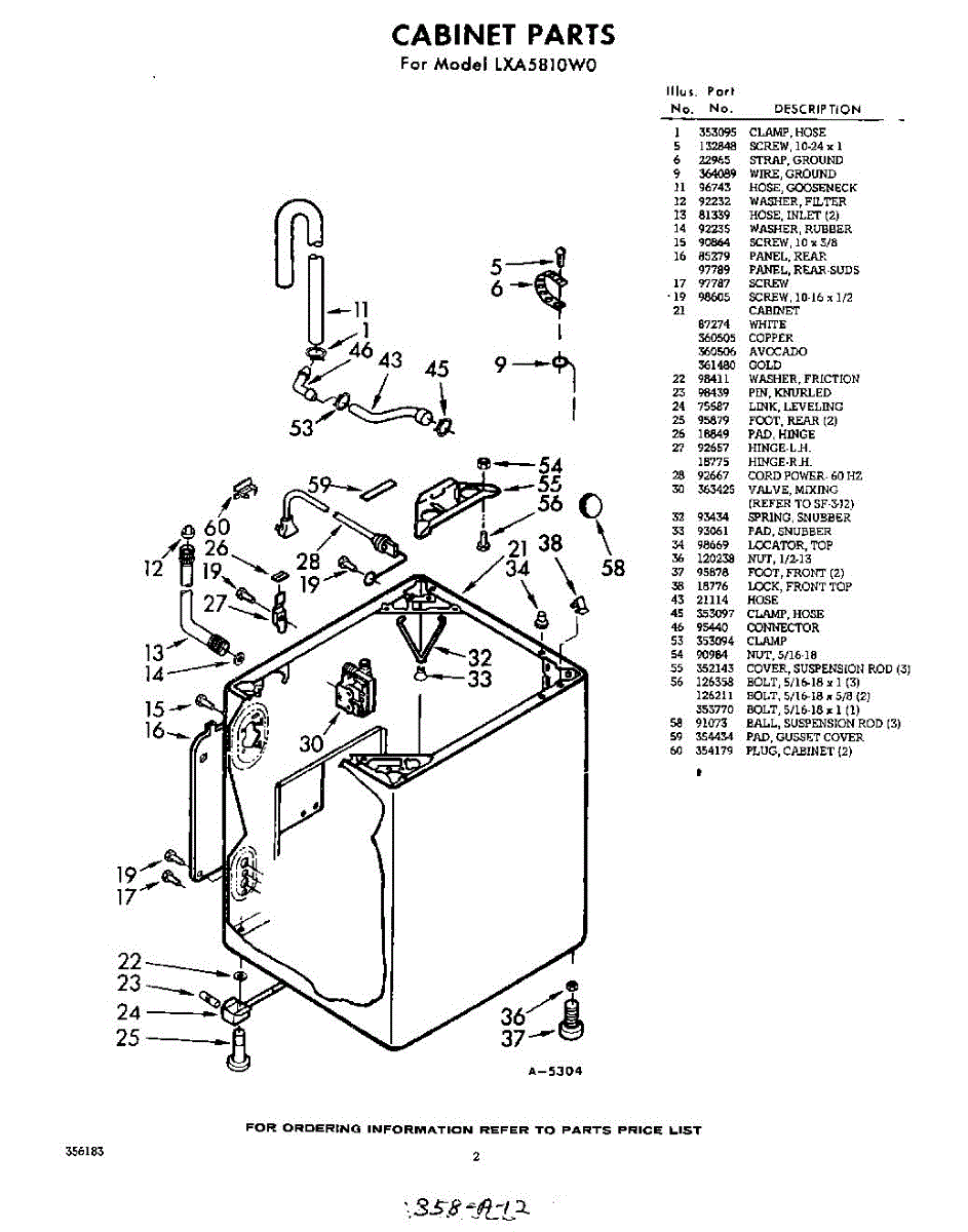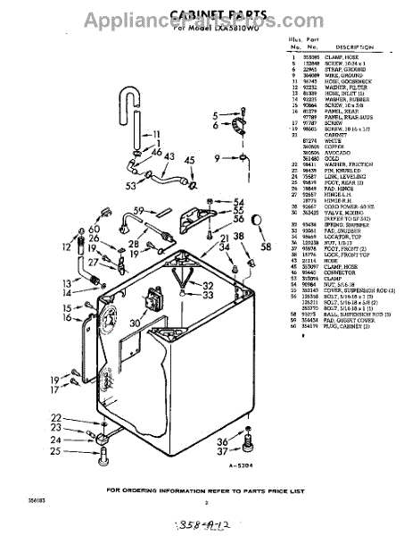 Parts for Whirlpool LXA5810W0: 02 - Section Parts
