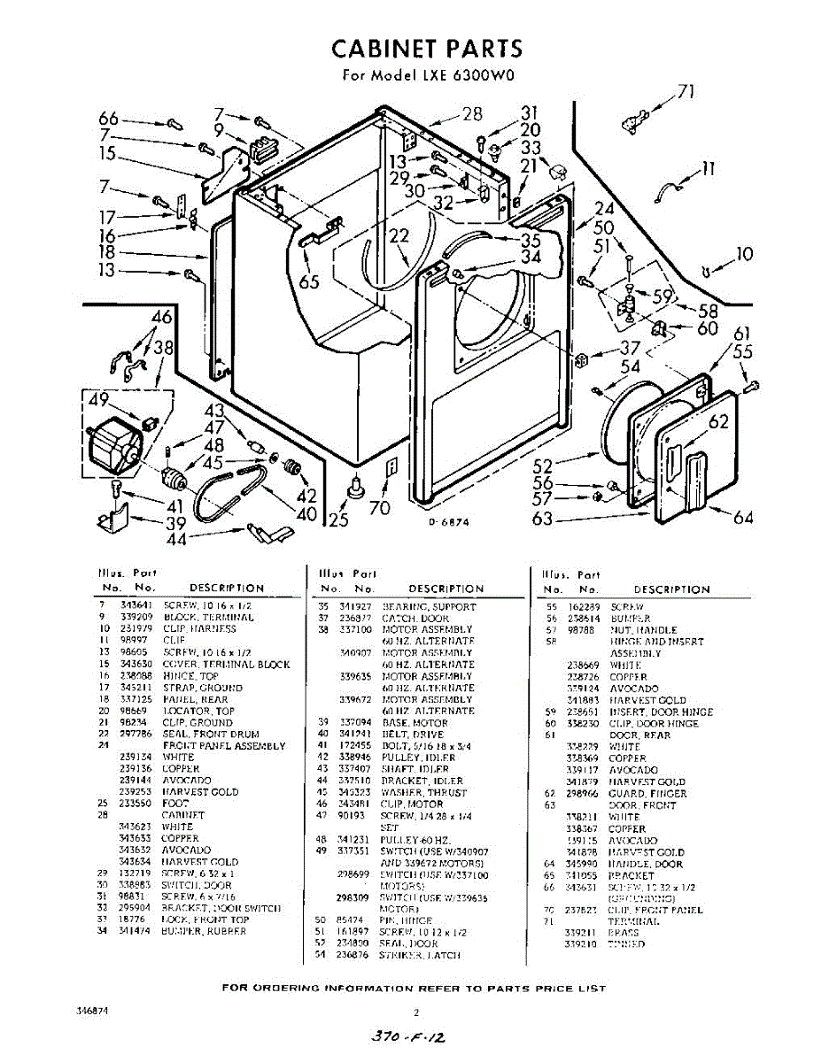 Parts for Whirlpool LXE6300W0: 02 - Section Parts