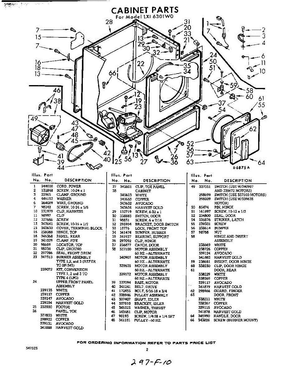 Parts for Whirlpool LXI6301W0: 02 - Section Parts