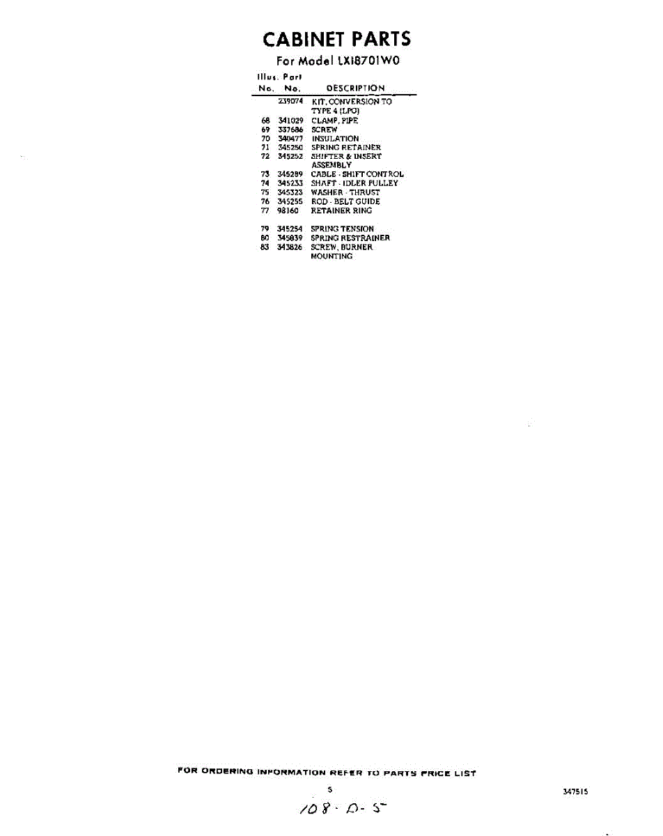 Parts for Whirlpool LXI8701W0: 05 - Section Parts