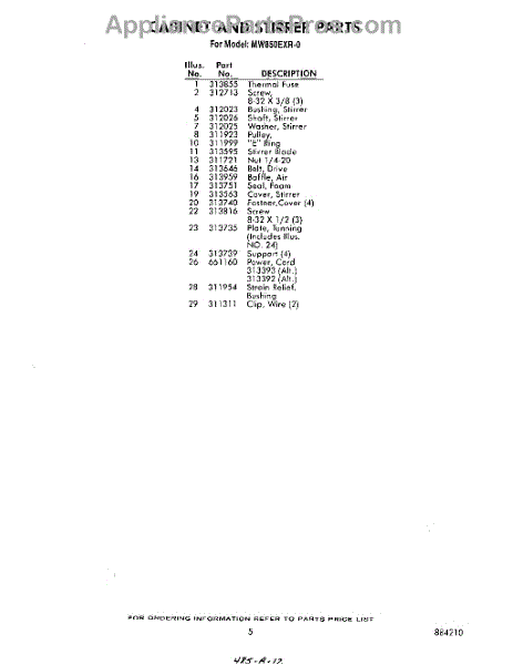 Parts for Whirlpool MW850EXR0: 05 - Section Parts