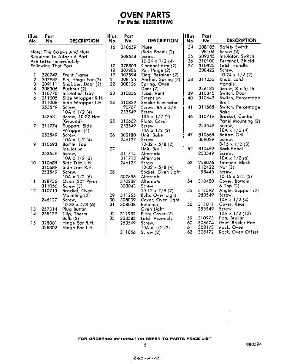 Parts for Whirlpool RB2600XKW0: 05 - Section Parts