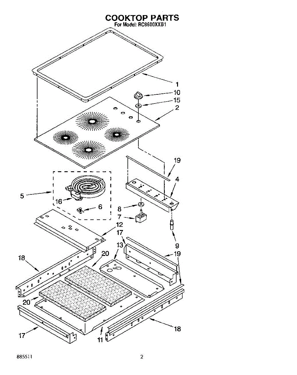 Element locator spring attaches cooktop burner brackets to the surface. Replaces broken, missing, or worn springs that secure element mounting hardware.