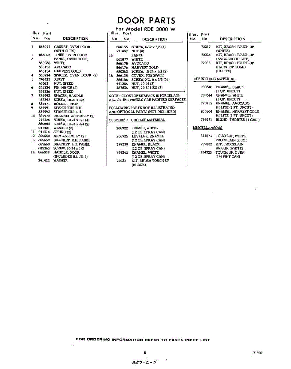 Parts for Whirlpool RDE3000W: 05 - Section Parts