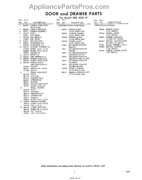 Parts for RDE3020W
