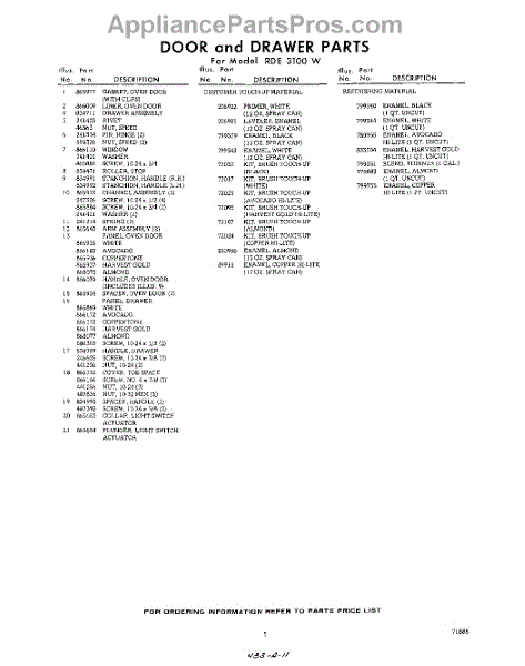 Parts for Whirlpool RDE3100W: 05 - Section Parts