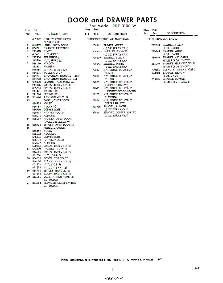 Parts for RDE3100W
