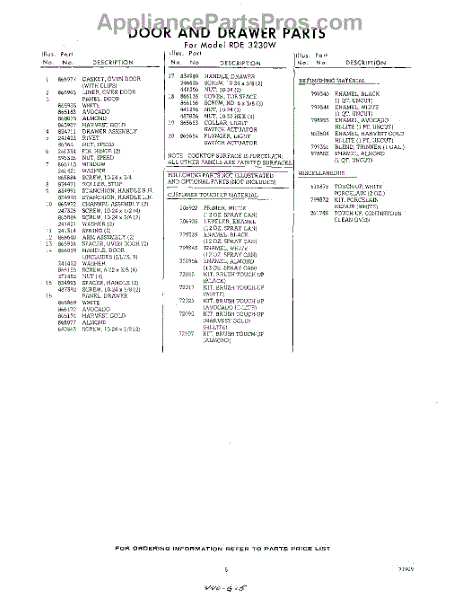 Parts for Whirlpool RDE3230W: 05 - Section Parts