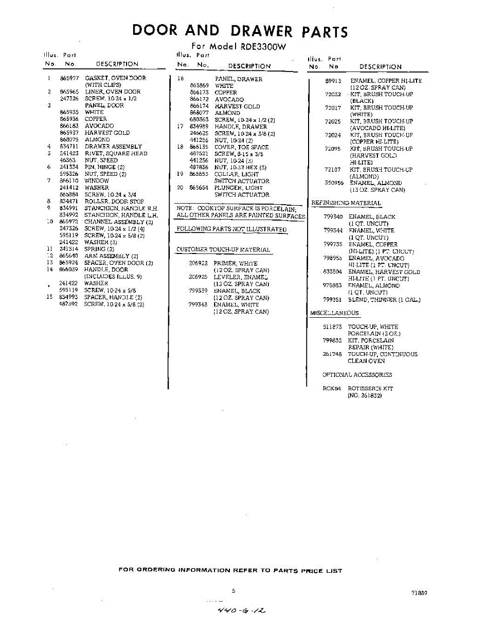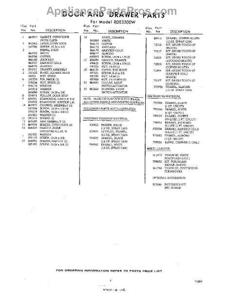 Parts for Whirlpool RDE3300W: 05 - Section Parts