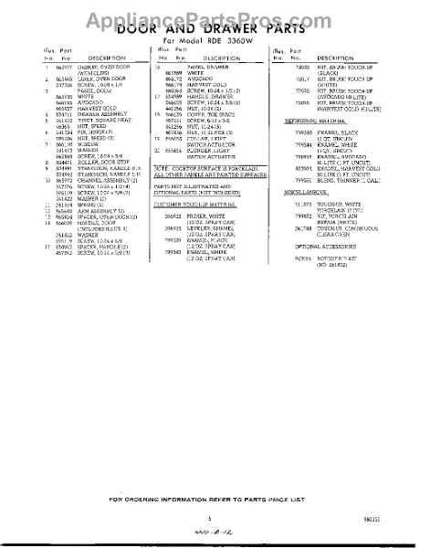 Parts for RDE3360W