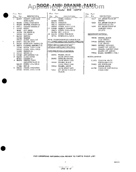 Parts for RDE34EPW
