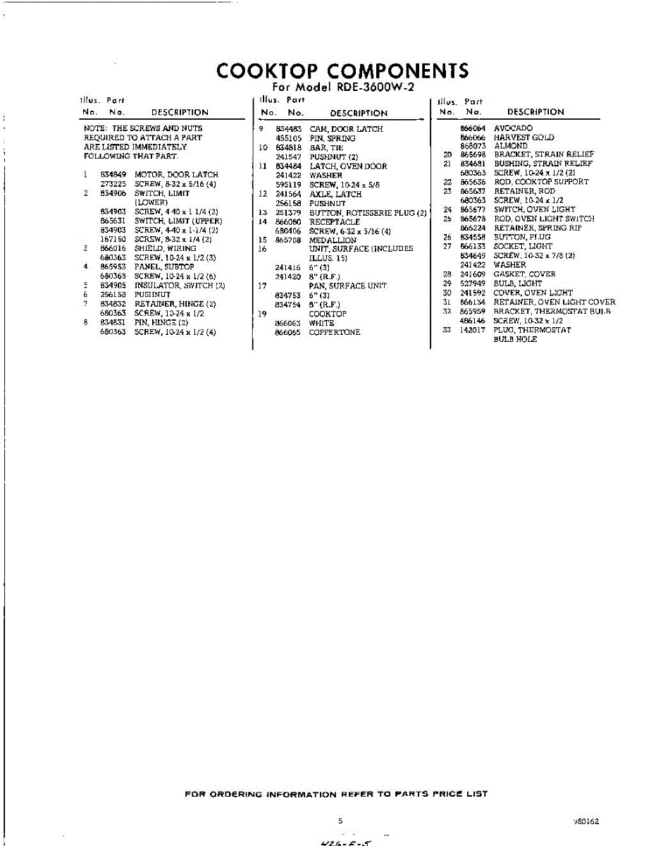 Parts for RDE3600W2