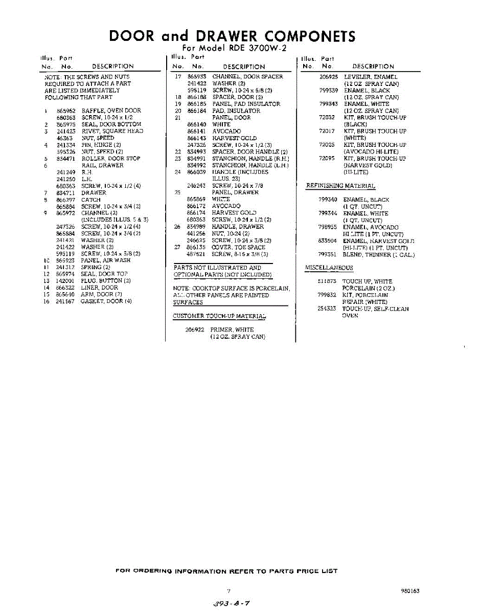 Parts for Whirlpool RDE3700W2: 07 - Section Parts