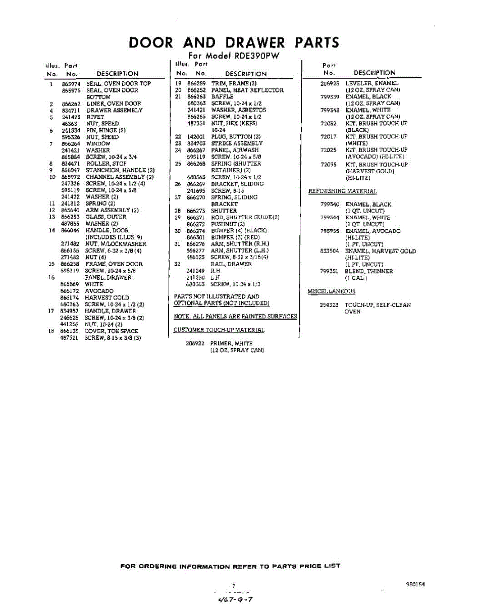 Parts for RDE390PW