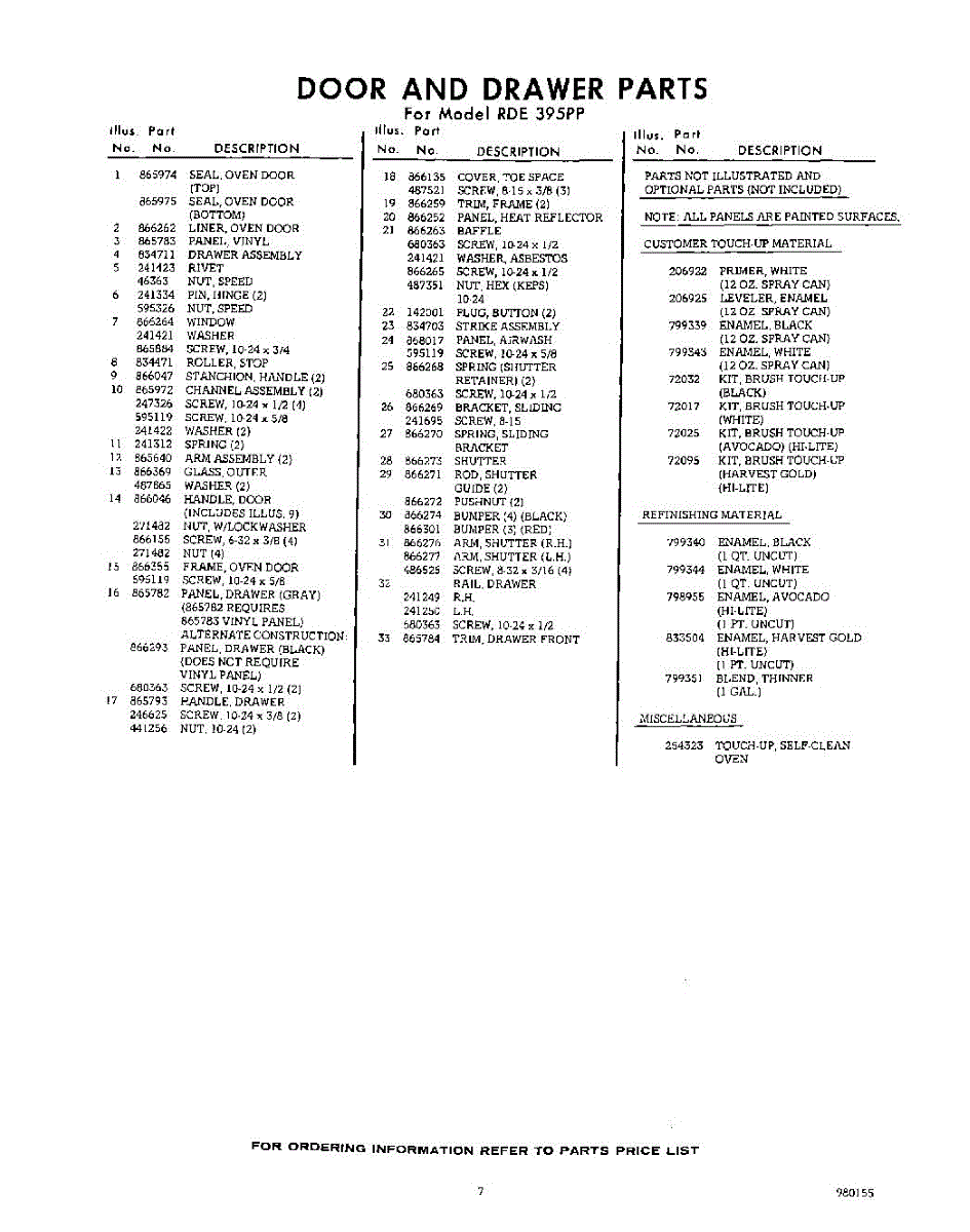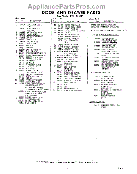 Parts for Whirlpool RDE395PP: 07 - Section Parts