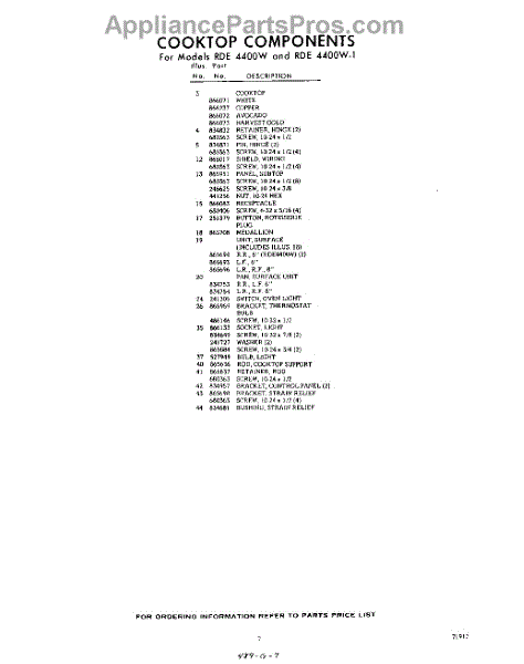 Parts for RDE4400W1
